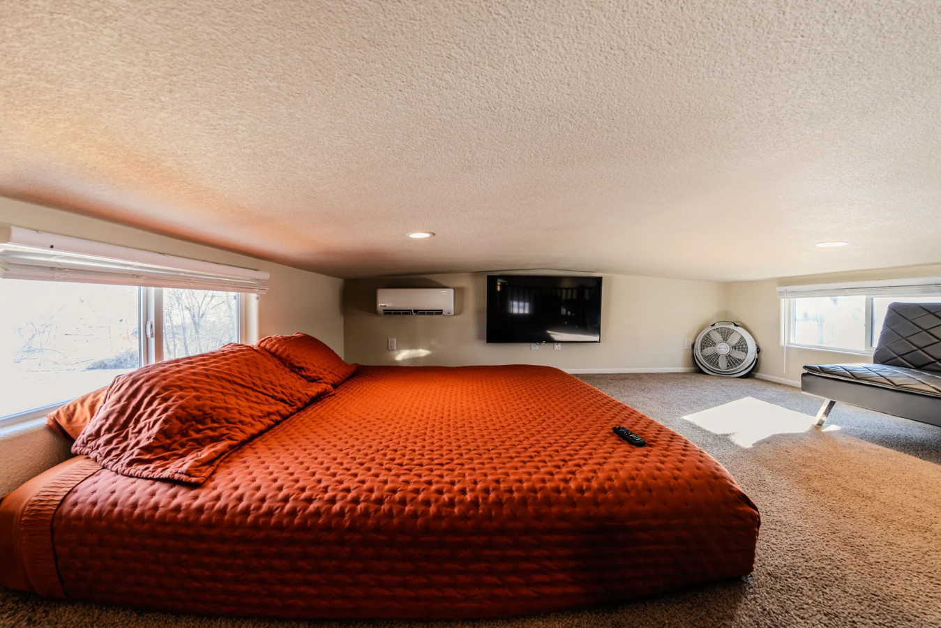 - Loft with king bed (low ceiling, ~4 ft) - great for kids, teens, or flexible adults