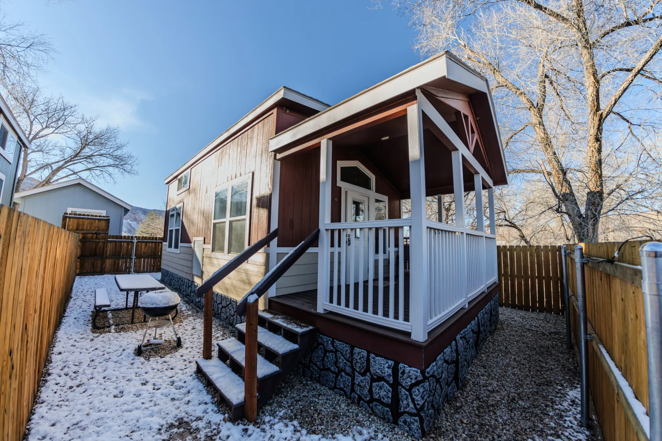 The tiny house was great for our family of four. The loft was perfect for the kids to sleep and my 6-year-old loved it because she was the only one who could stand up in it! Everything was comfortable and well-supplied. It is 1.5 miles outside town which means that it’s quieter and away from the Main Street crowds.