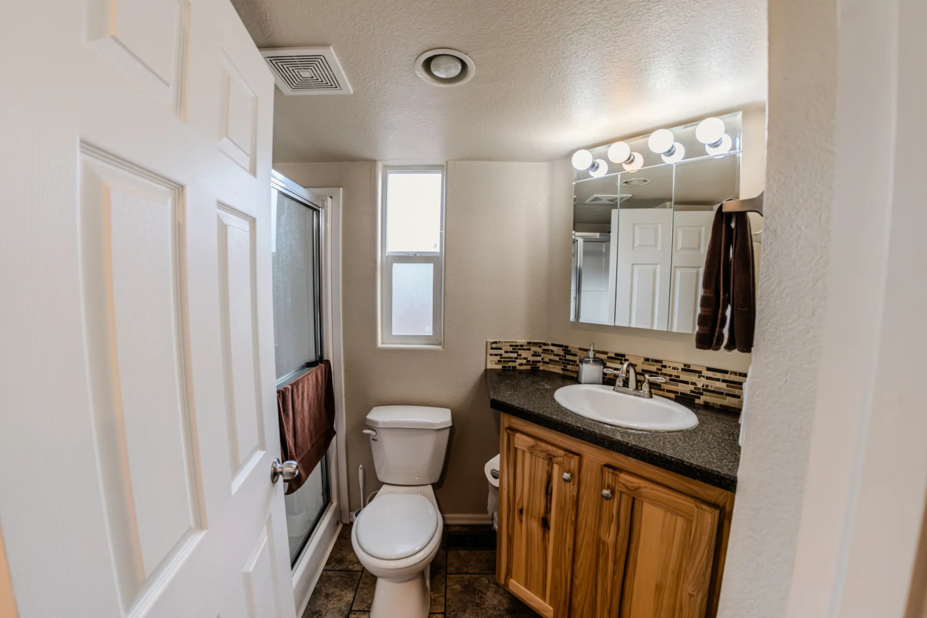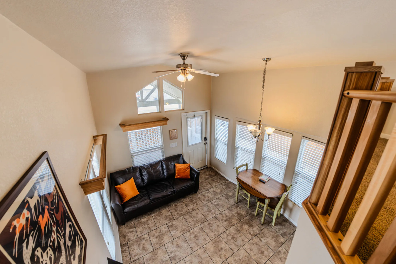 After a long day floating the Colorado River or exploring the scenic red rock canyons along Highway 128, you do not want to squeeze back into a noisy hotel room on the highway. You want your own space - a real kitchen for real meals, a private porch for morning coffee, windows you can actually open, and a comfortable bed (not a hotel mattress) waiting. Sorrel River Cabin #18 is your tiny home basecamp in Moab: close to everything that matters, quiet enough to actually rest, and comfortable enough to feel like home. Why Stay at Sorrel River Cabin #18? ⭐ Comfortable Sleeping for Up to 6 Guests - Private queen bedroom with standard ceiling - so you can actually sleep before 5 AM sunrise river floats or scenic drives - Loft with queen bed (low ceiling, ~4 ft) - great for kids, teens, or flexible adults - Pull-out sofa bed in the living area - Most comfortable accommodations for 2-4 adults + kids or teens ⭐ Cook Your Own Meals (Skip $15 Hotel Breakfast Buffets) - Full stove, oven, full-size fridge, microwave, coffee maker - Cooking basics included (salt, pepper, basic utensils) - Pack trail lunches, make real breakfasts, and eat out when you want - not because you have to ⭐ Mountain Views & Private Porch (Your Post-Hike Reward) - Front porch with rocking chairs for sunrise coffee or evening stars - Watch the La Sal Mountains glow at sunset - Clear stargazing nights away from city lights - no light pollution, just you and the Milky Way ⭐ Great Location: Minutes from Everything, Quiet at Night - Peaceful edge-of-town setting off the main highway - Close enough for easy access to parks, trails, and restaurants - Far enough away that you can actually sleep in quiet ⭐ Perfect for Travelers Who Want: - Couples & solo adventurers who want more space and privacy than a hotel room (and a kitchen to pack trail snacks) - Small families looking for a cozy basecamp near Arches and Canyonlands - Mountain bikers, hikers, and park-hoppers who need a clean, simple place to recover between big days - Digital nomads blending work and play (fast Wi-Fi, laptop-friendly workspace) ⭐ Parking - Free parking right at the cabin - First-come, first-served space for trailers and oversized vehicles 🐾 Pets Welcome - Bring your furry friend (or two) along for the adventure Because of its location near Arches and its unique tiny home layout, Sorrel River Cabin #18 fills up quickly. Secure your spot today and enjoy the best Moab has to offer.